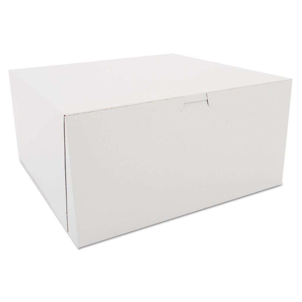 The bakery box is made from high quality paperboard that is white on the outside and Kraft on the inside. Perfect for cakes, pastries, pies and cupcakes. The white, clay-coated exterior accepts a printed logo or business name. Each one-piece box ships flat for transport and storage, but assembles easily into a folded carton with lock-corner closures and a tuck top to secure contents.