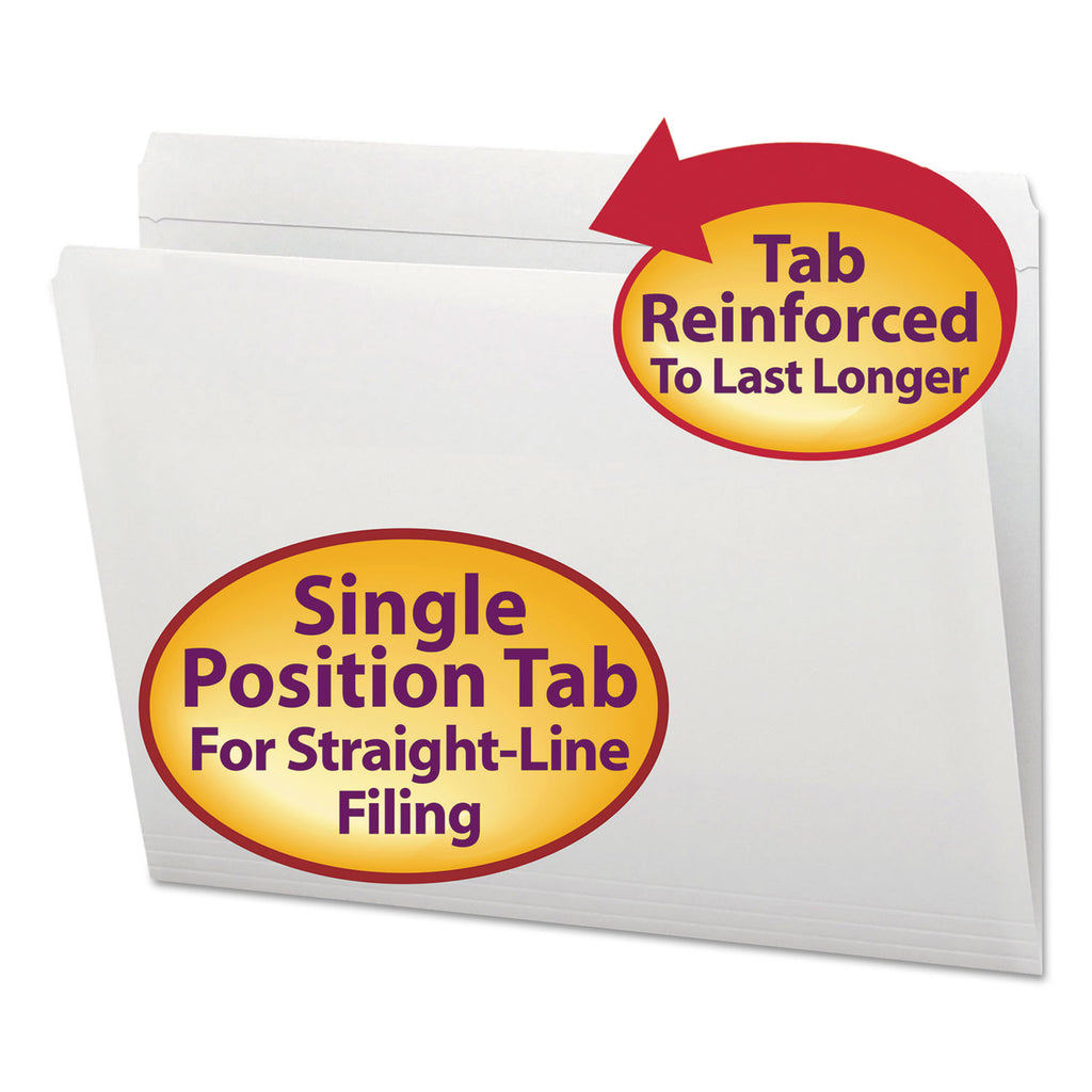 Use a rainbow of colors to categorize different types of folders, which speeds filing and retrieval time, or to complement your company colors or decor. Multiple tab positions to fit any vertical or lateral filing system. Reinforced tab adds strength where you need it most. Made of 11 point colored stock for everyday use.