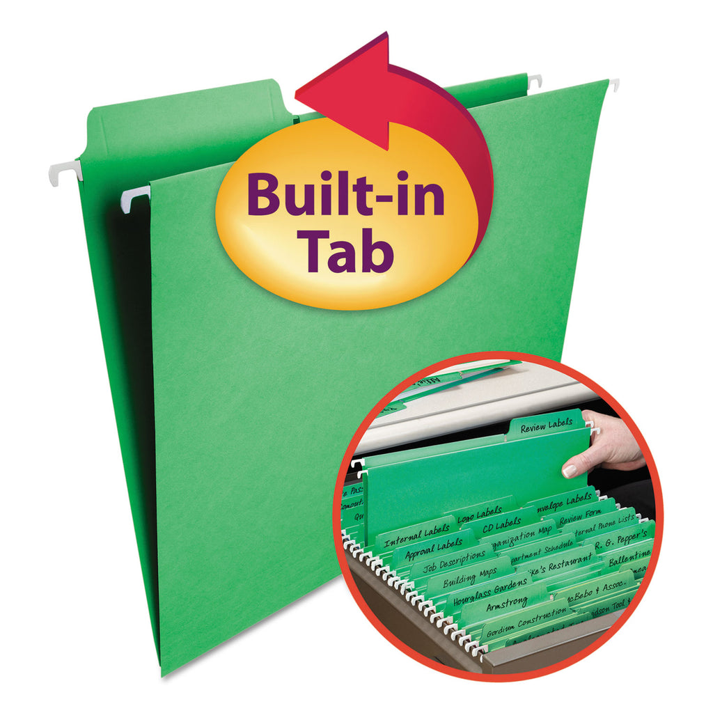 Poly FasTab® Hanging Folders hanging folders feature a 1/3-cut built-in reinforced tab and coated rod tips that slide easily in file drawers for hassle-free organizing. No assembly required. Built in larger tabs are easy to label by either handwriting directly on the tab or applying self-adhesive labels. Stronger than common hanging file folders, these durable tear proof and water resistant poly hanging file folders are easy to clean, acid-free and PVC-free.