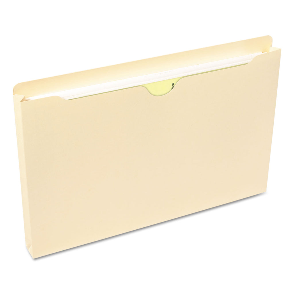 Full-height side gusset keeps materials from slipping out. Great for taking files out of the office. Select reinforced tabs for frequently used files. Features full height sides for document security and straight-cut tabs for easy labeling. These file jackets are great for taking documents out of the office for presentations, meetings or to work on at home. The straight-cut tab gives ample space to describe the contents and flexibility in labeling. For additional storage, apply one of our Self-Adhesive Poly Pockets (68185) to the outside, sold separately.