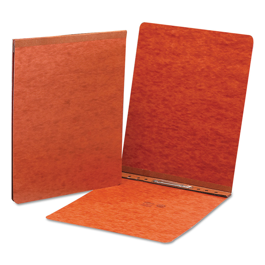 Two-piece coated premium pressboard cover compresses material tightly to reduce bulk. Neatly bind and cover presentations, reports, manuscripts, proposals or other documents that require loose leaf style binding. Made of heavy-duty 20 point colored premium pressboard stock for added durability. Coated to resist moisture and stains. Fastener 8.5" center to center. Embossed title panel on front cover.