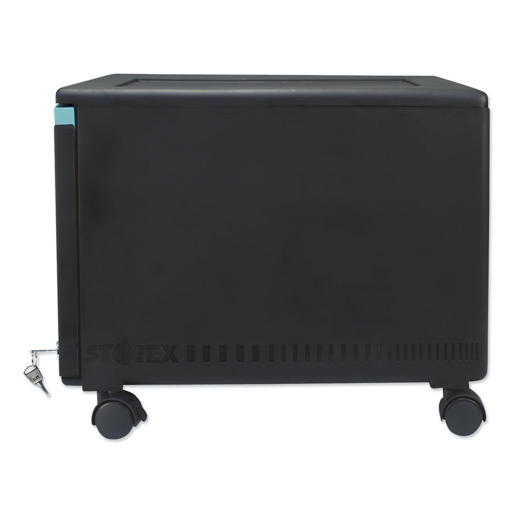 Mobile cabinet makes filing easy and efficient. Removable casters allow cabinet to be stacked on top of two-drawer mobile filing cabinet for added storage capacity. Heavy-duty plastic construction with built-in rails for letter/legal hanging files. Drawers lock individually and feature a built-in label holder.