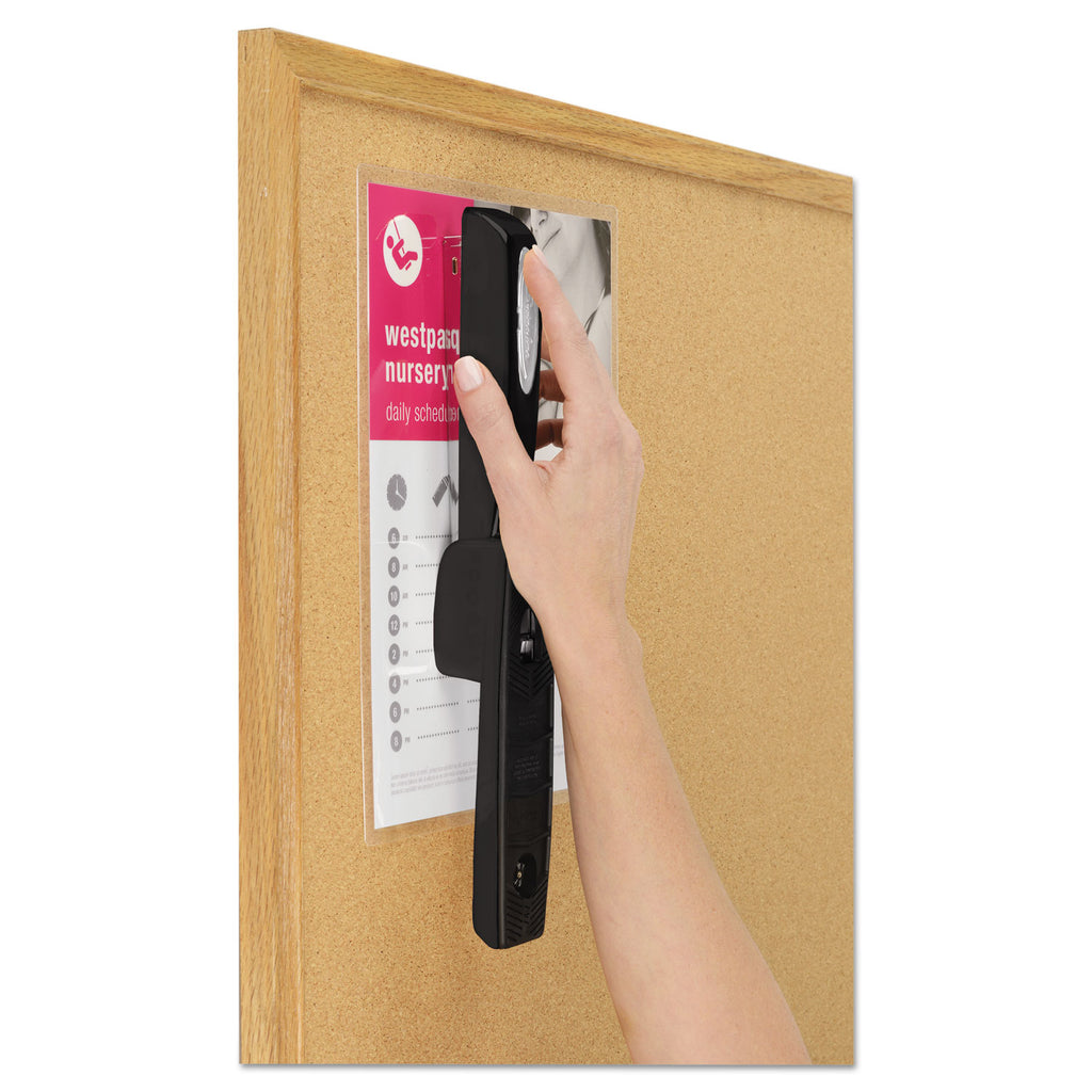 Manual desktop stapler is simple, accurate, reliable and strong. Metal construction, inner rail and positive locking latch makes this stapler especially durable, minimizes jamming and keeps staples aligned. The 747 model staples 25 sheets at a time and opens flat for tacking ability to post papers instantly to a bulletin board or similar tackable surface. This stapler also has a reversible anvil for pinning. By turning the anvil you can create a pin staple with legs that point out so it can be removed without a staple remover, and without ripping papers.