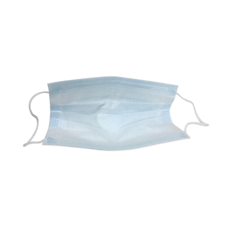 Durable and flexible elastic ear loop band fits around head and ears securely. One size fits all. Easy to put on and take off. Keep the blue-side outside and the nose clip on the upper side. Adjustable nose strip contour design fits face for a more comfortable fit. Breathable three ply layers. Blue and white outer layers made of non-woven polypropylene materials. Middle layer is made from melt-blown polypropylene materials for mouth and nose protection. These masks should be disposed of after each use.