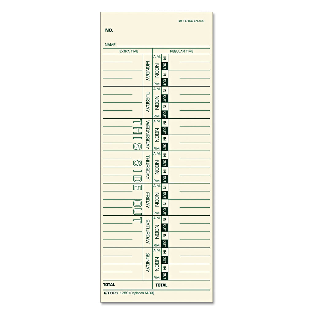 | Special Features | Manila Stock Printed Green on Front-With days of week printed on card. Left side for extra time, right side for regular time. |
