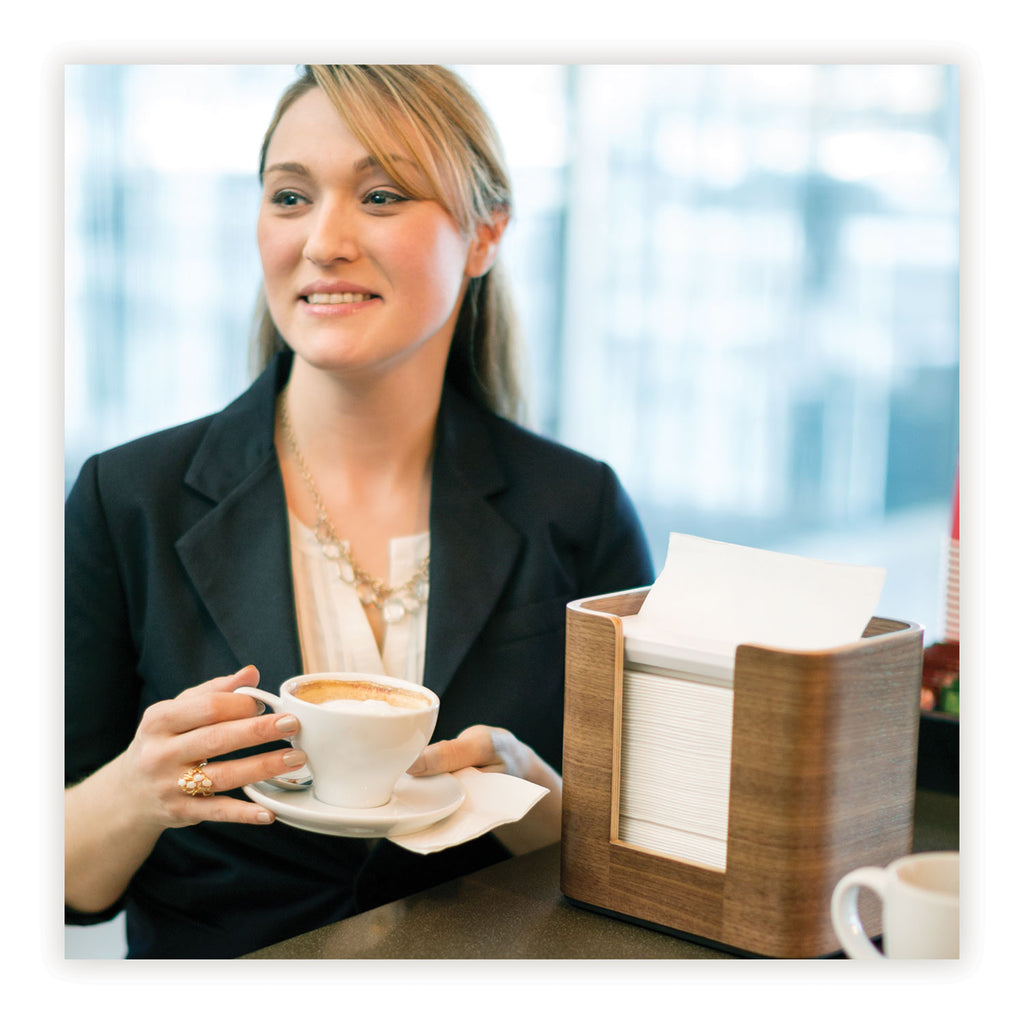 - Dispensing design ensures that patrons use fewer napkins and touch only the napkin they use improving personnel hygiene.