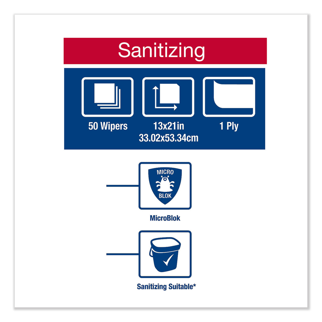 The Tork Foodservice Cleaning Towel is an excellent towel for use with quat sanitizers when the primary task is to deliver sanitizer to hard surfaces. Color-coded—designating area of use by color is a foodservice best practice that eliminates the potential for cross-contamination. Easy to rinse, dries quickly and is low linting. Good absorption will allow cloth to pick up dirt and mop up spills effectively. The product comes in a sturdy, easy to store self-dispensing corrugated box. Antimicrobial cloths inhibit growth of odor-causing microorganisms on the product surface.