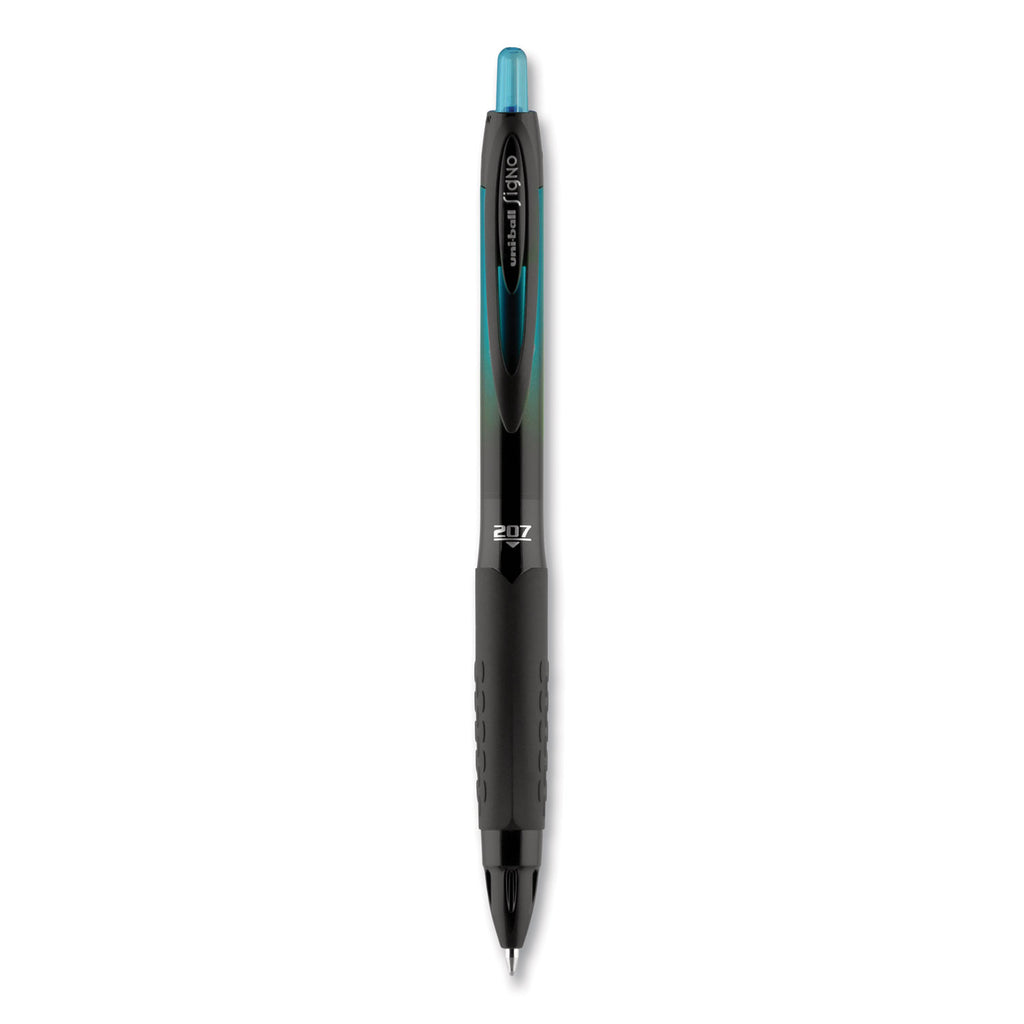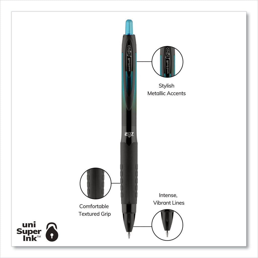 Give your writing a boldly infused flavor with 207 BLX Retractable Gel Pens from uni-ball featuring a 0.7mm medium point with a stainless steel tip that resists bending and breaking. Rich, pigmented gel ink color delivers an exceptionally smooth writing experience for intense, vibrant lines. Use these retractable gel pens for everyday writing tasks, note taking, list making and check signing , trusting its quick-drying uni Super Ink. Innovative uni Super Ink technology effectively entraps the gel ink into the paper, producing fraud, fade and water-resistant documents that resist check washing or bleaching. The 0.7mm medium point strikes the perfect balance between bold and detailed lines. A textured grip offers greater comfort and control as you continue writing, while a translucent ink window indicates the level of gel ink remaining, so you don't run out unexpectedly. These retractable gel pens come in an assortment of black ink infused colors, adding an element of drama to your every day tasks and creative writing projects.