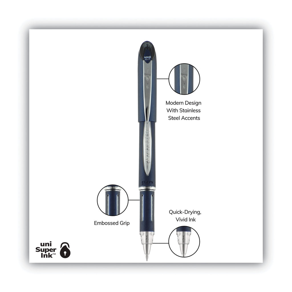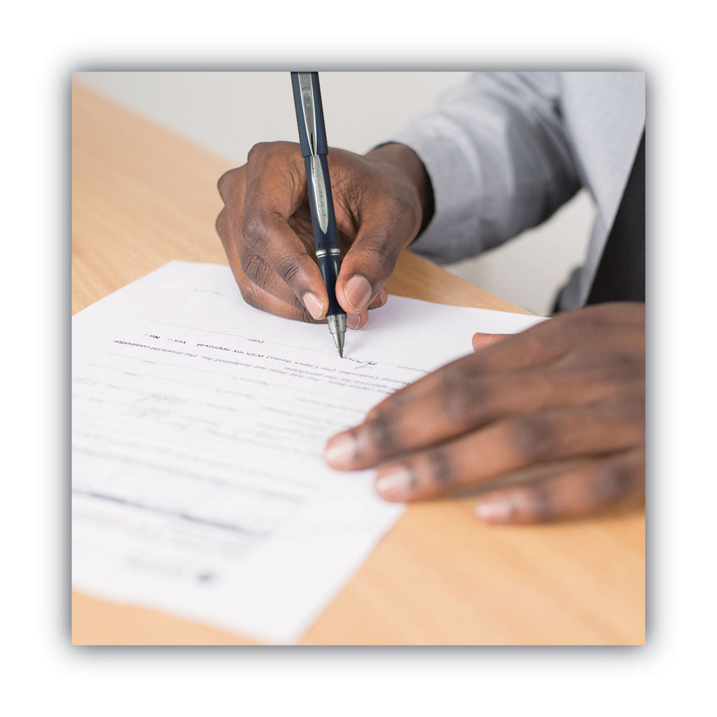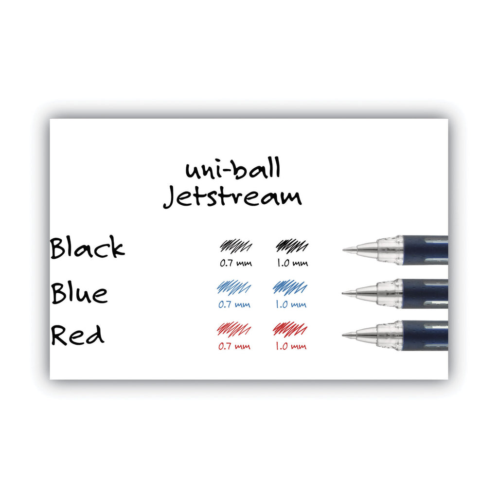 Write with greater speed and efficiency using JETSTREAM Ballpoint Stick Pens from uni-ball. The pens deliver an incredibly fast, clean writing experience that helps you jot down your thoughts and ideas quickly. Combining the silky smoothness and vivid vibrancy of a gel pen with the fast-drying efficiency of a ballpoint, these JETSTREAM ballpoint pens offer the best of both worlds. Quick-drying ink resists smudges and smears, making this pen suitable for left-handed writers. An embossed grip offers better control when writing, while contemporary stainless steel accents offer a stylish appeal. JETSTREAM stick pens feature pigment-based uni Super Ink technology that settles deep into the paper, offering three-way protection against fraud, fading and water.