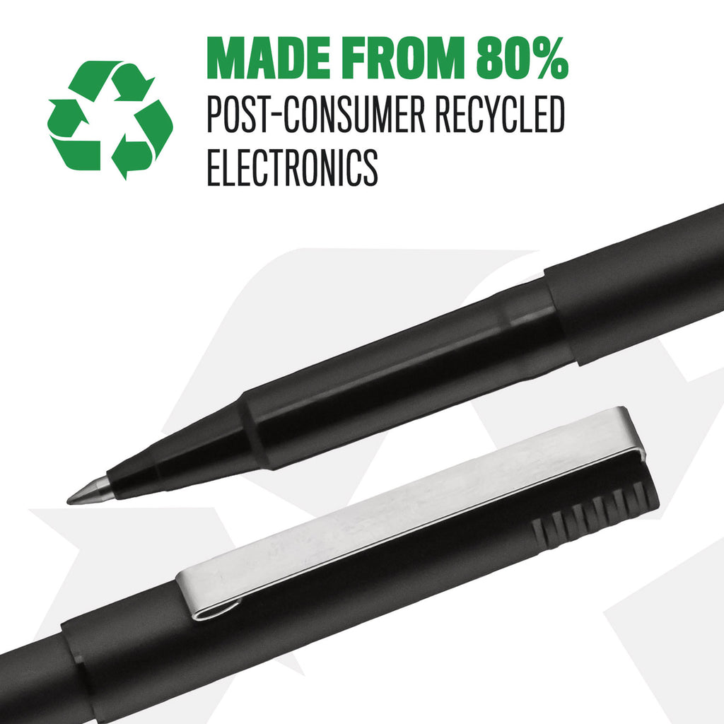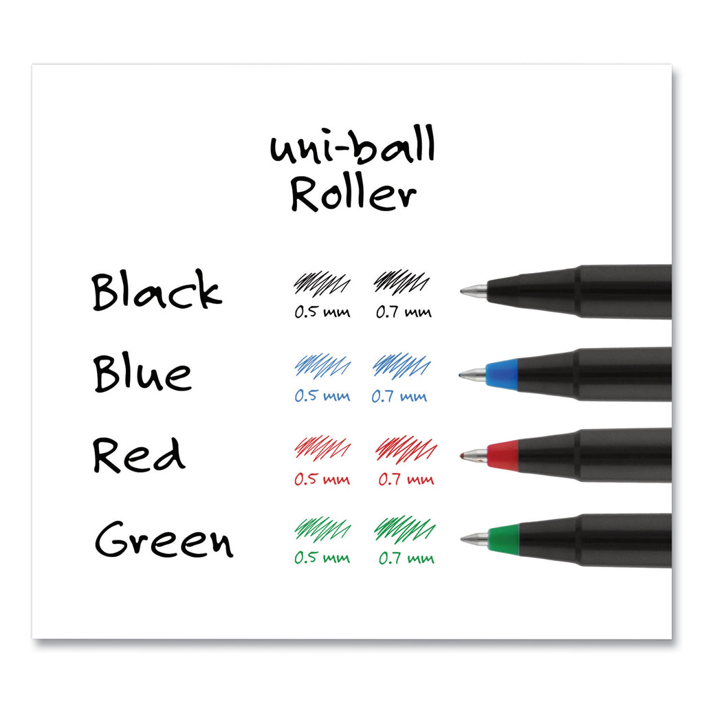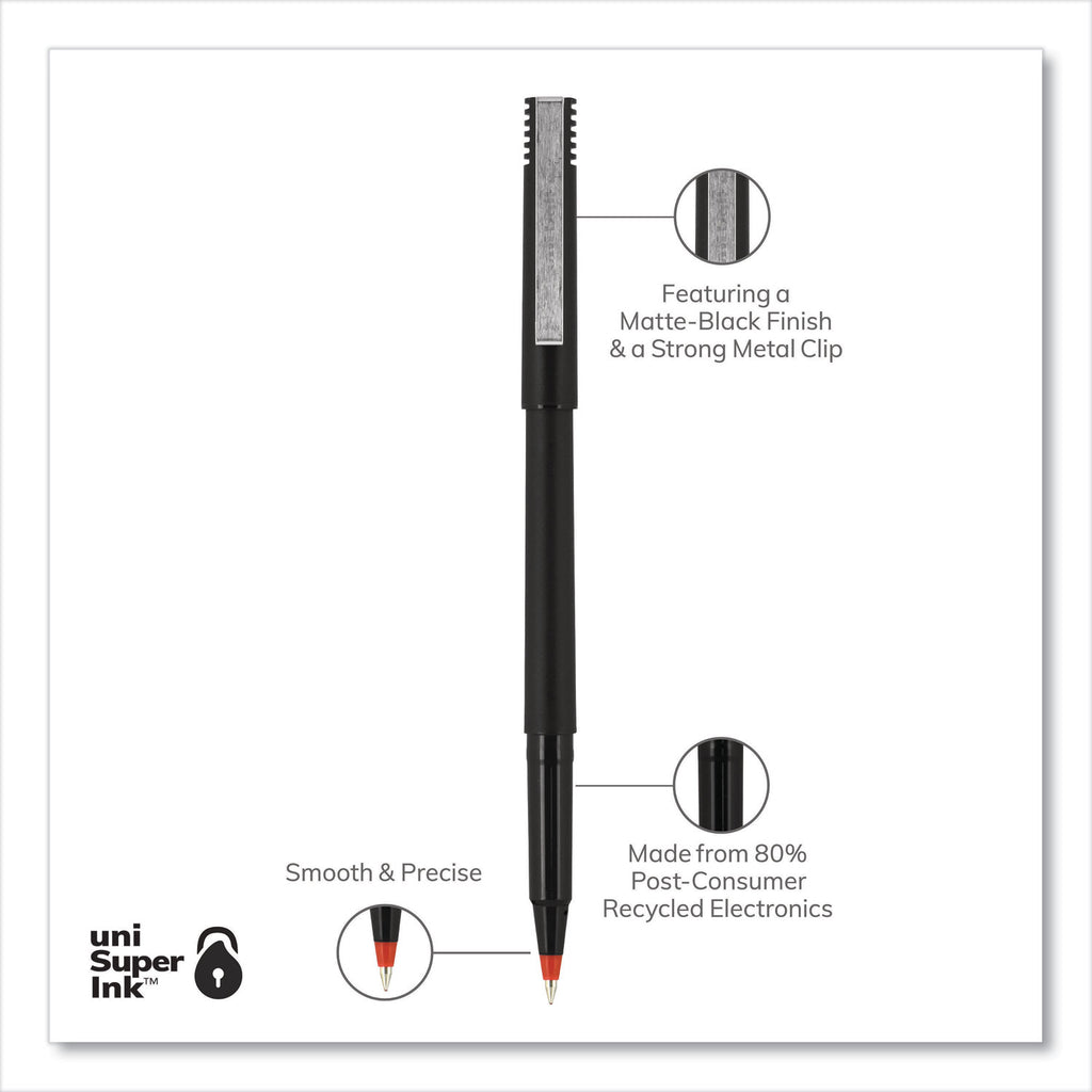 Stock your office, home or classroom with Roller Rollerball Stick Pens from uni-ball featuring strong, long lasting tips. These rollerball pens deliver the silky-smooth glide of a fountain pen without smudging for effortless writing. Roller pens produce neat and precise lines for intricate writing, making it easy to create super fine details in your drawings and diagrams. Capped roller pens are useful for a variety of tasks from note taking to signing checks and legal documents to uniquely embellishing fun and creative writing projects. Innovative uni Super Ink technology forms a strong bond with the paper, protecting from water, fading and fraud. Made from recycled material.