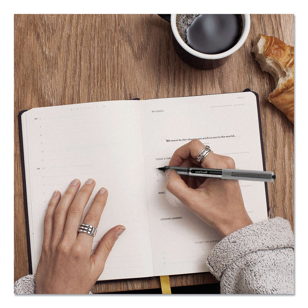 Make your everyday writing easy with the effortless and dependable performance of Vision Rollerball Pens from uni-ball featuring strong, long lasting tips. Capped roller pens deliver an even liquid ink lay-down for reliably smooth, vivid lines and a rich color for improved clarity and readability. Great for all writing tasks from taking notes to record keeping with archival quality, acid free roller ink. Innovative uni Super Ink technology forms an indestructible bond with the paper to minimize the risk of check washing or document fraud, while also protecting from water and fading. The exclusive Uni-Flow Ink System ensures a consistent, delightfully fluid writing experience, and a translucent window ensures that you don't run out of ink unexpectedly. Enjoy beautiful clean lines and give all of your ideas a burst of brilliant color with this classic style rollerball pen.