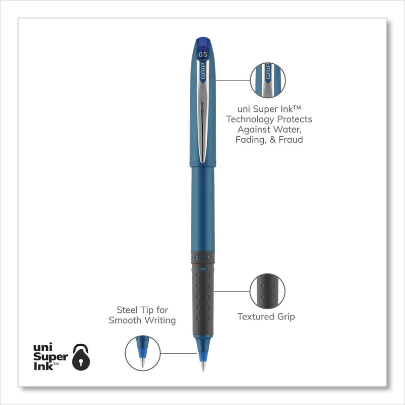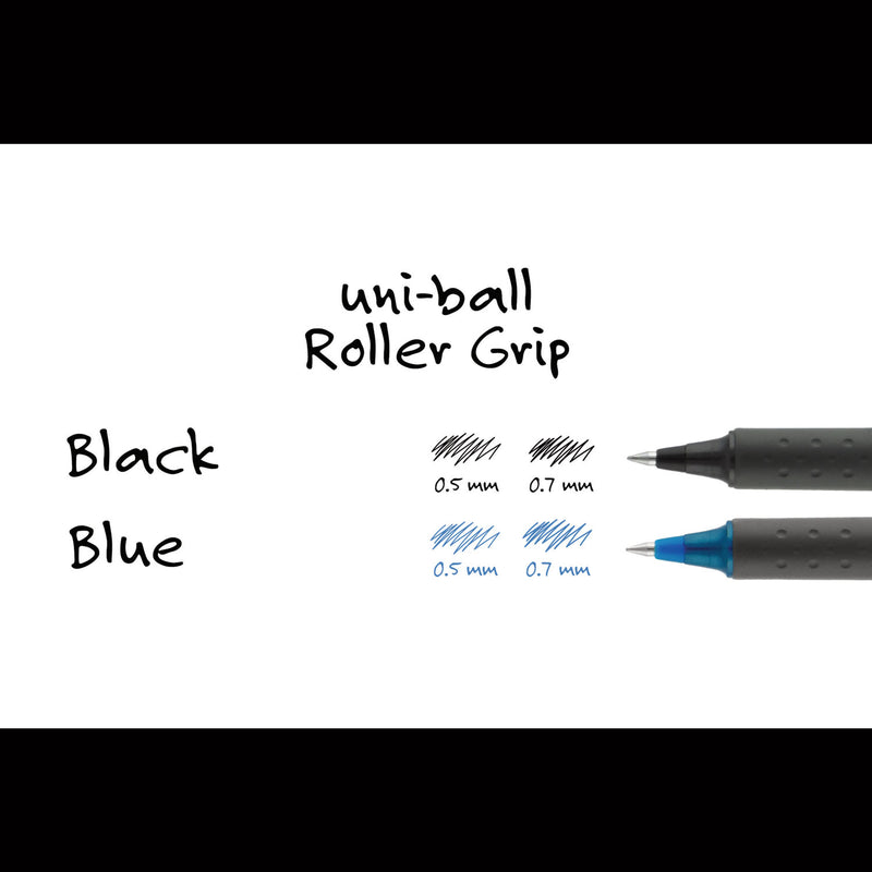 Achieve precision writing with Roller Grip Rollerball Pens from uni-ball featuring strong, long lasting tips. Capped roller pens deliver crisp and bold lines with rich color for improved clarity and readability. Great for everyday writing tasks like taking notes and making lists, these pens offer dependable, free-flowing writing the moment the pens hit the paper. Roller Grip pens have a soft, cushioned grip for writing support while maintaining good control. Exclusive uni Super Ink technology locks in ink for fraud-resistant documents that are also protected from water and fading. Improve your everyday writing experience with liquid ink roller pens that have colorful barrels, making it easy to grab the ink color you want.