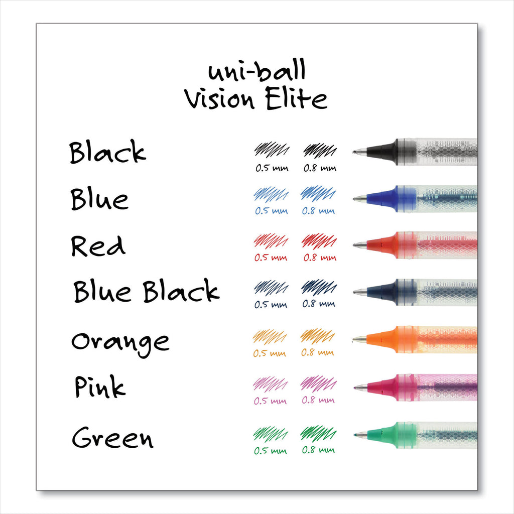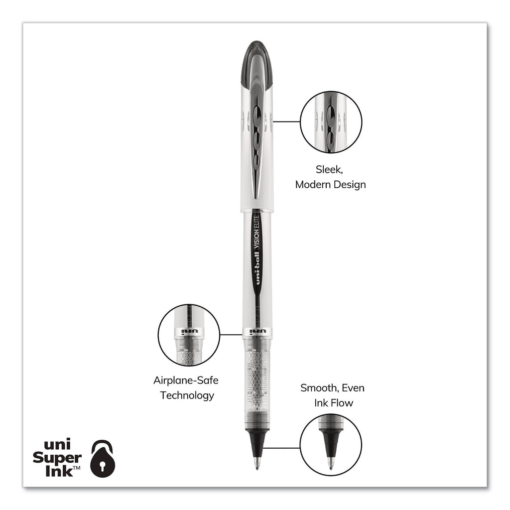 Create ideas as vividly as can be imagined with Vision Elite Rollerball Pens from uni-ball featuring a bend-resistant stainless steel tip and a tungsten carbide rollerball. Capped roller pens deliver smooth, intense lines with unparalleled definition - useful for note taking, list making, signing checks and legal documents, and even uniquely embellishing creative writing projects. Innovative uni Super Ink technology effectively entraps the gel ink into the paper, producing fraud, fade and water-resistant documents that resist check washing or bleaching. These Vision Elite pens have a special design that withstands cabin pressure variances without leaking, making them useful for travelers. Exclusive Uni-Flow Ink System ensures a consistent, delightfully fluid writing experience, and a translucent window ensures that you don't run out of ink unexpectedly. Express your signature style with the sleek, modern design and elite performance of uni-ball's Vision Elite Rollerball pen - no matter the altitude.