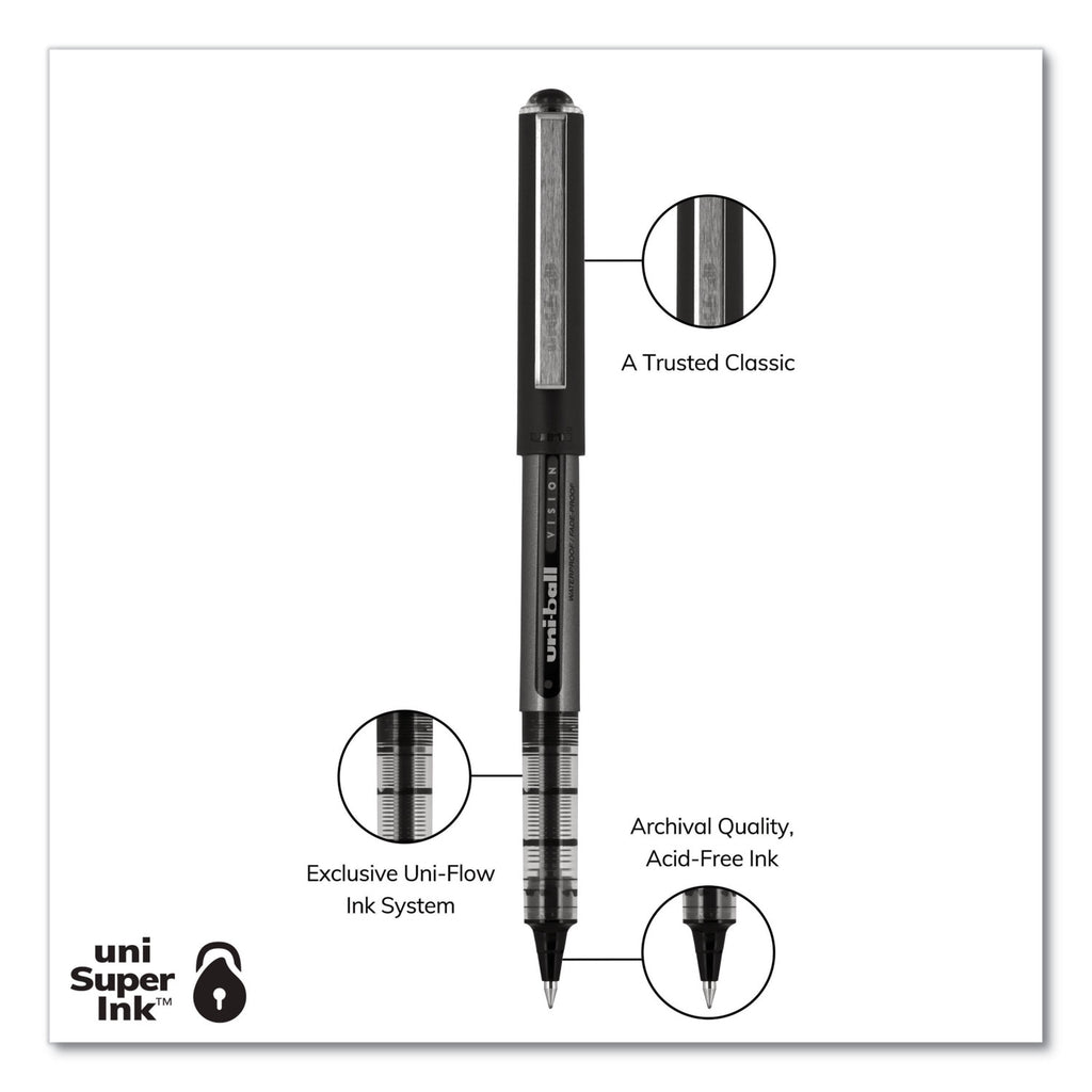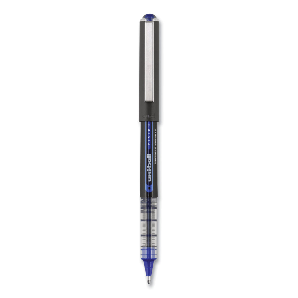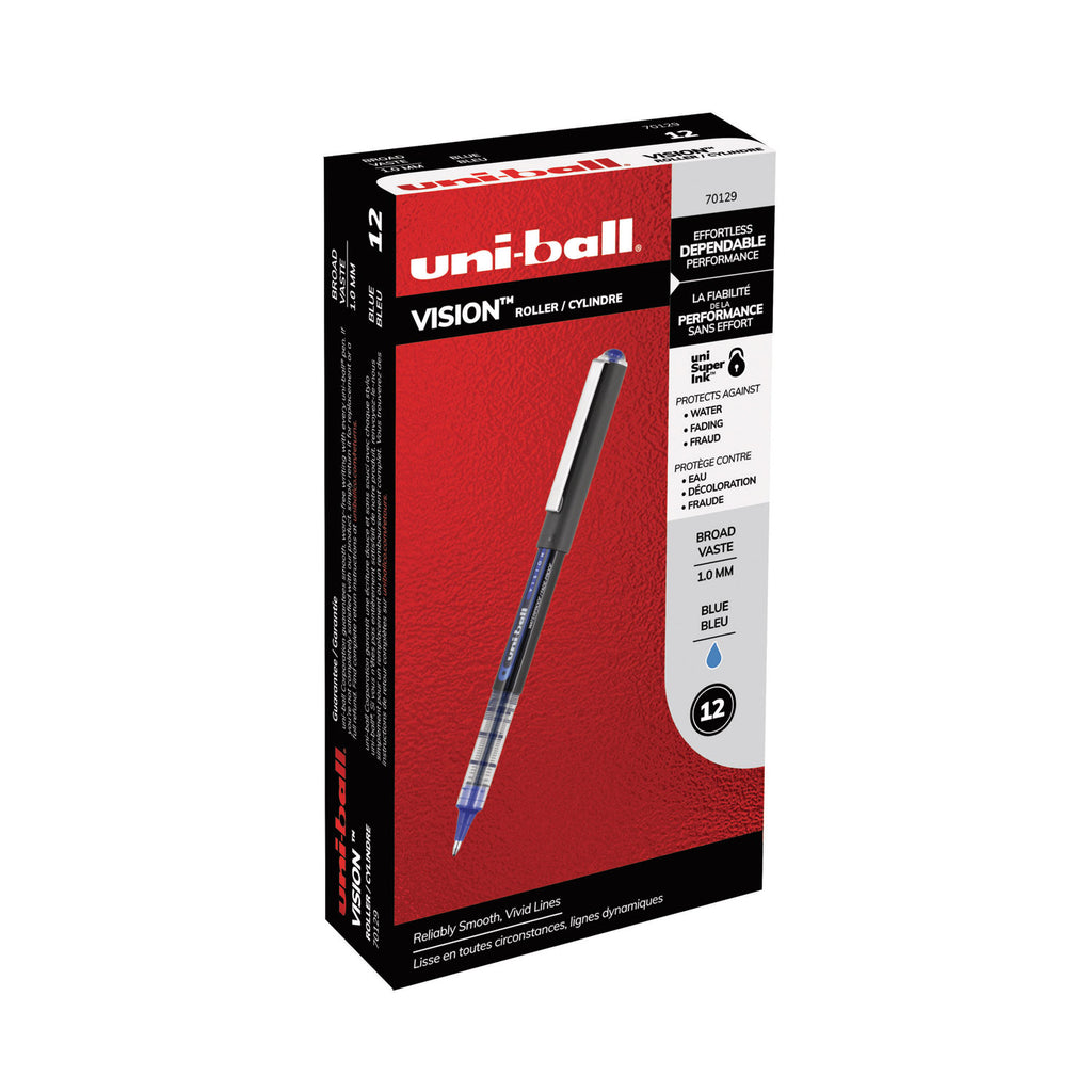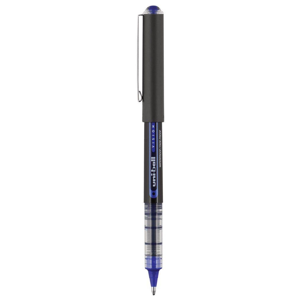Make your everyday writing easy with the effortless and dependable performance of Vision Rollerball Pens from uni-ball feature strong, long lasting tips. Capped roller pens deliver an even liquid ink lay-down for reliably smooth, vivid lines and a rich color for improved clarity and readability. Great for all writing tasks from taking notes to record keeping with archival quality, acid free roller ink. Innovative uni Super Ink technology forms an indestructible bond with the paper to minimize the risk of check washing or document fraud, while also protecting from water and fading. The exclusive Uni-Flow Ink System ensures a consistent, delightfully fluid writing experience, and a translucent window ensures that you don't run out of ink unexpectedly. Enjoy beautiful clean lines and give all of your ideas a burst of brilliant color with this classic style rollerball pen.