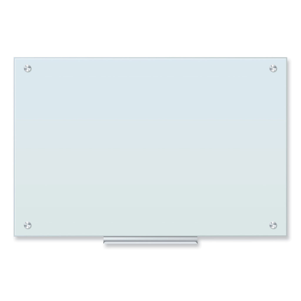 Frosted, tempered-glass dry erase boards are the perfect solution for frequent- and heavy-use areas: offices, classrooms, conference rooms... any residential or commercial space. Clean, frameless design adds a contemporary flair to your wall, while enabling you to hang multiple boards adjacent to each other to expand your writing surface as far as your intended environment allows. Premium glass writing surface erases easily with a simple board eraser, without ghosting or staining, consistently outperforming all traditional melamine and painted steel alternatives—simply use any dry erase board spray or wet/dry board wipes on occasion to keep your board looking as good as new. Although all dry erase and glass markers work well with this board, U Brands dry erase markers provide the ultimate writing and eras-ability experience. All wall-hanging hardware is hidden under the mounting bolts to deliver a sleek, modern floating appearance, while simultaneously enabling both vertical and horizontal mounting options. The board is packaged with extra supportive corrugate material that is highly resistant to damage during shipping; all corrugated material can be recycled once unpacked.