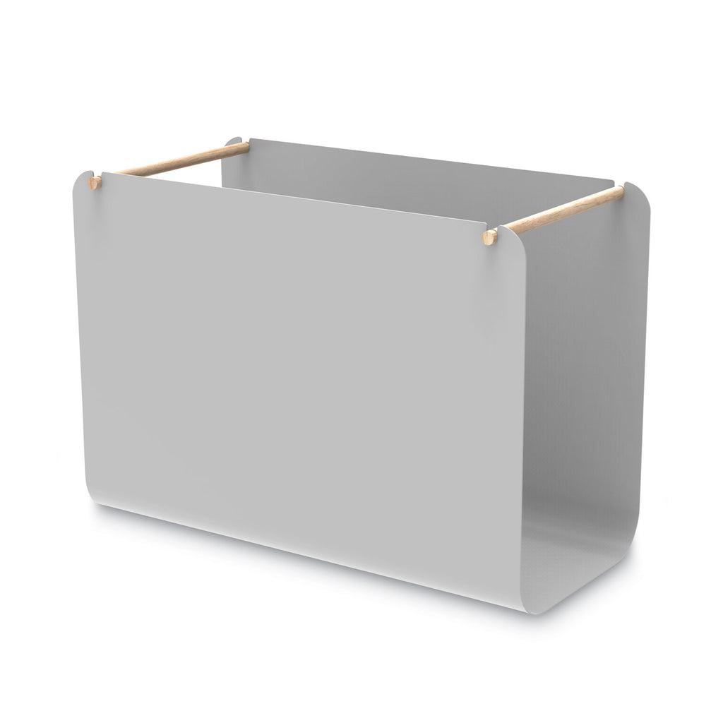 - Organize your desk or office in style with this metal file basket with real wood dowels.