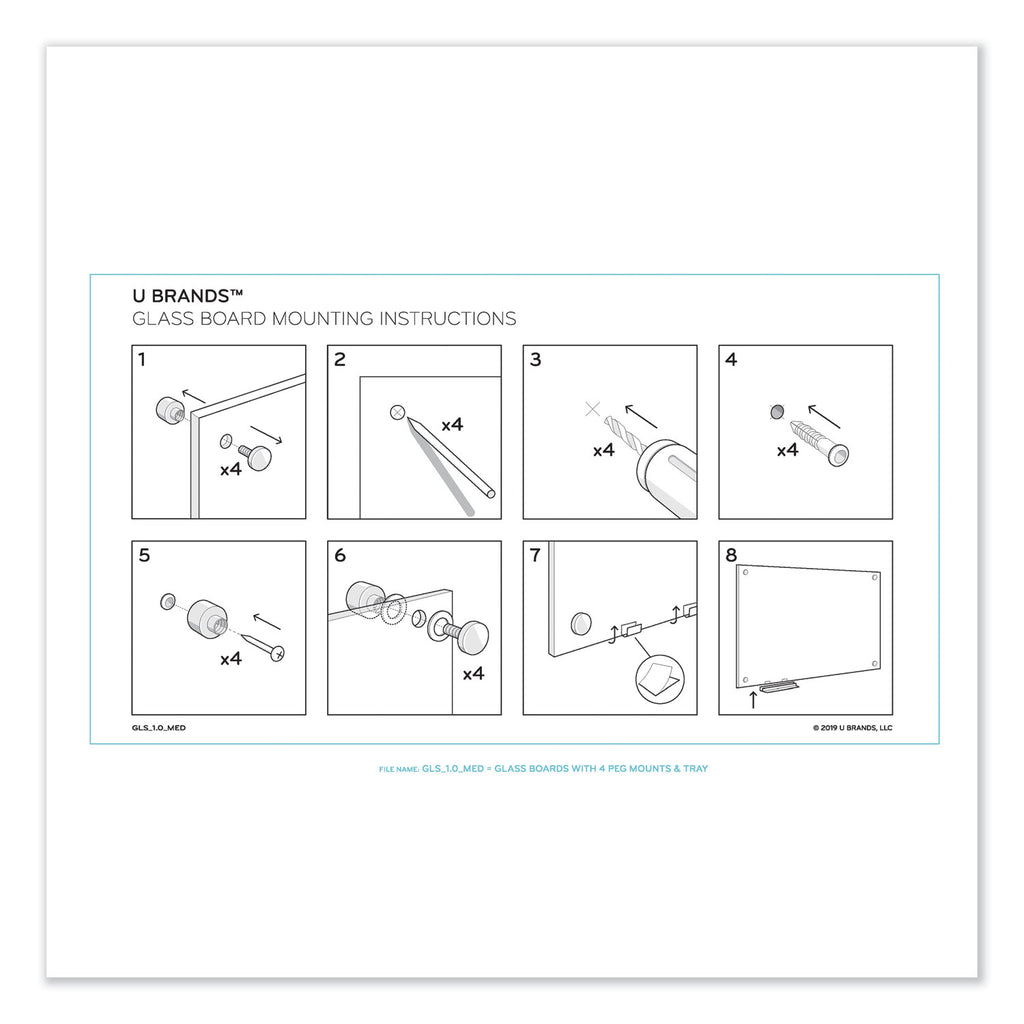 White frosted magnetic glass dry erase board is a perfect and functional solution for the frequent and heavy usage areas of your office, school classroom, home or any commercial space. Clean, contemporary and frameless product design lines will add a touch of subtle style to your wall. The modern frameless feature enables you to hang multiple glass boards adjacent to each other and expand the writing surface to fit your custom space needs. The board's premium magnetic ultimate glass writing surface will never stain or ghost. All ink erases easily with a simple eraser and the glass surface continuously outperforms all traditional melamine or painted steel dry erase writing surfaces. Occasionally, use any dry erase board spray or wet dry erase board wipes after continuous use to clean the writing surface. The glass magnetic surface works with high energy rare earth magnets. Although all dry erase and glass markers work well with this board, the U Brands dry erase markers provide the ultimate writing and eras-ability experience. For safety, the board is made from tempered glass as well. This whiteboard board has a universal mounting system, as it can be hung vertically or horizontally to fit your allocated space. All wall hanging hardware is hidden under the mounting bolts for a sleek and modern appearance. Mounting hardware and instructions are included for quick and easy mounting. The board is packaged with extra supportive corrugate material that is highly resistant to damage during shipping; all corrugated material can be recycled once unpacked.