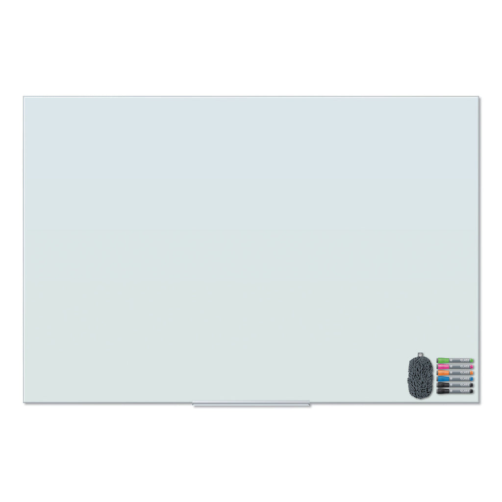 - White frosted glass background creates high contrast with any color dry erase or glass markers. Includes 6 liquid glass markers and 1 shag board eraser.