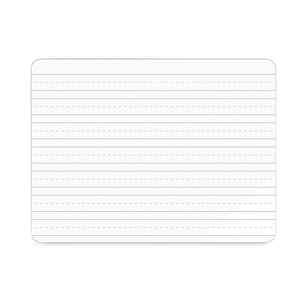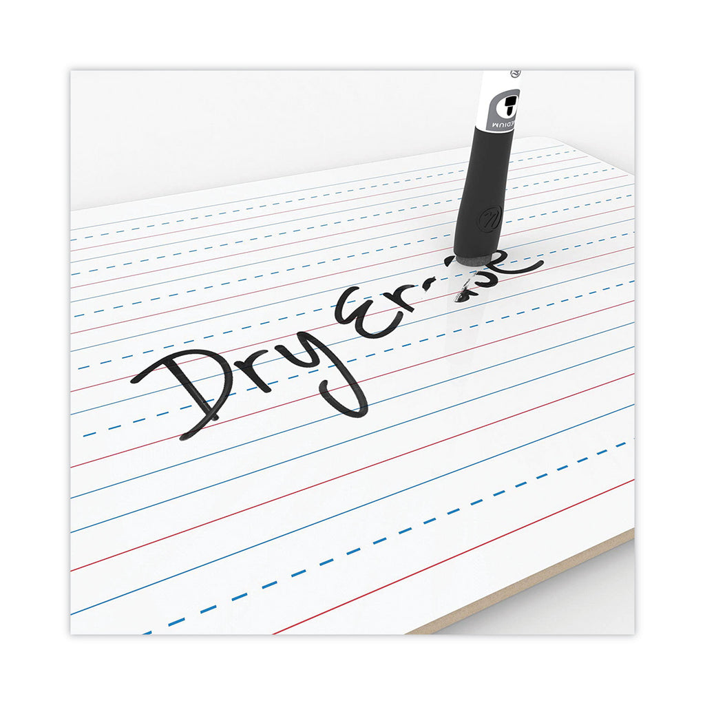 An essential teaching tools for every teacher or parent. Provide children with what they need to practice printing block letters or writing cursive as well as to complete math problems, draw pictures and express their creativity. Reusable, dry-erase surface is ideal for both work and play, whether your children are at home, at school or on the go. In the classroom, it's perfect for situations where teachers may wish to ask students to solve problems individually and hold up their answers, high, to share with the teacher and the classroom, once the task is complete. High-quality surface is ghost- and fade-resistant to ensure longevity, no matter how frequently the board may be used. Double-sided format is ruled for handwriting-practice on the front and unruled for math, art and more on the reverse. Rounded corners help ensure safe use by children of all ages. Although all dry erase markers work well with this board, U Brands dry erase markers provide the ultimate writing and eras-ability experience (markers and erasers are sold separately).