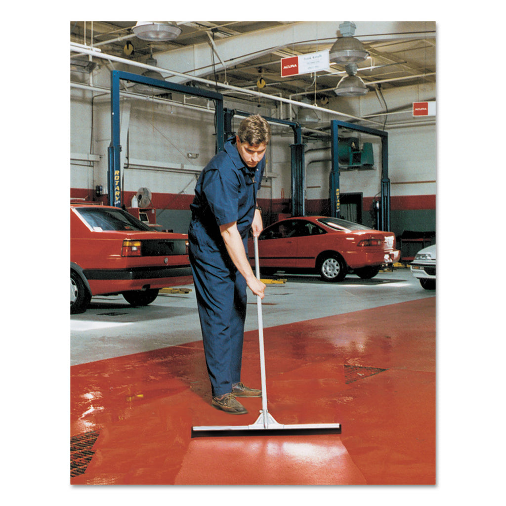 Digs deep into tile crevices and uneven surfaces to remove liquids, leaving floor finger dry. Removes dirt from grout. Heavy-duty rust-resistant galvanized steel socket accepts any tapered handle (not included). Constructed of heavy-duty galvanized steel and features a splash guard. Black natural foam rubber blade.