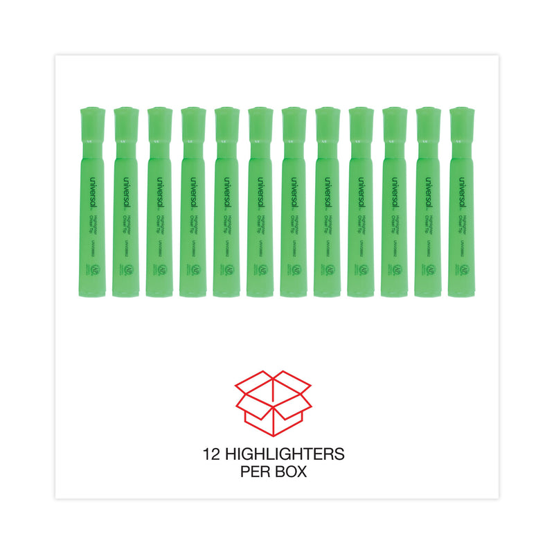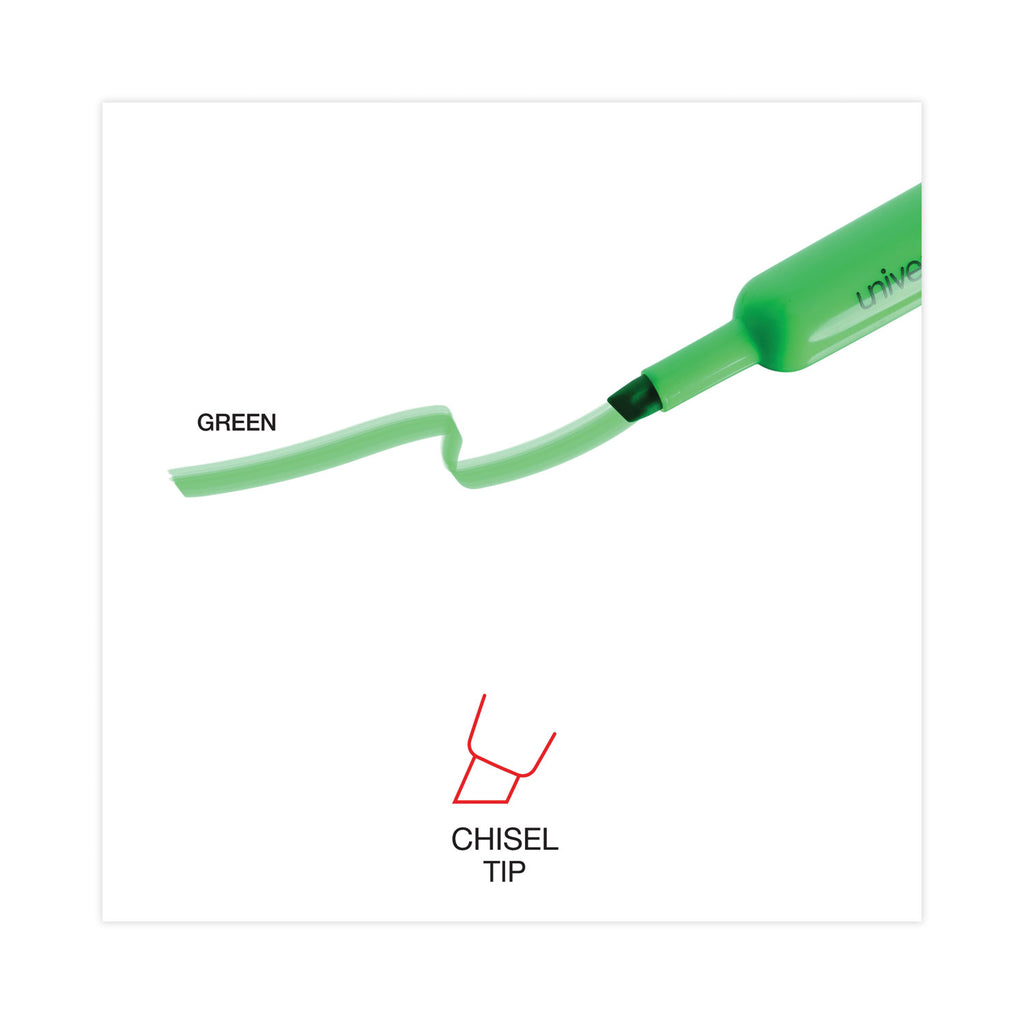 Universal™ Desk Highlighters are well-designed highlighting pens that feature bright, vibrant colors. The chisel tip allows for both broad and narrow lines. Large cap holds firmly on either end of the highlighter so it doesn’t get lost. The bright ink stands out on the page, dries quickly, and will not fade. Enjoy effortless highlighting with a smooth barrel that’s easy to hold.