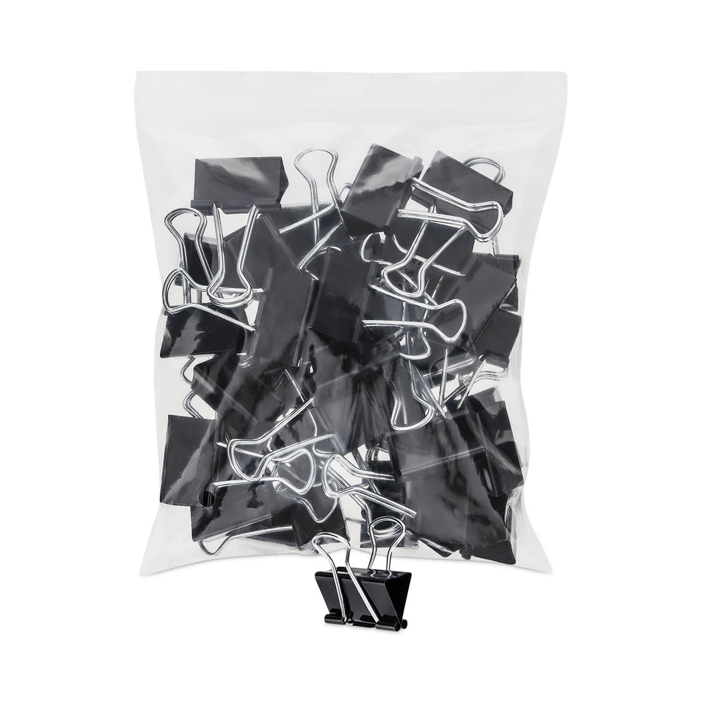Ultra-efficient binder clips feature handles that can be hung, folded flat against clipped material, or removed for permanent binding. Efficient triangular design provides optimum strength and compression.