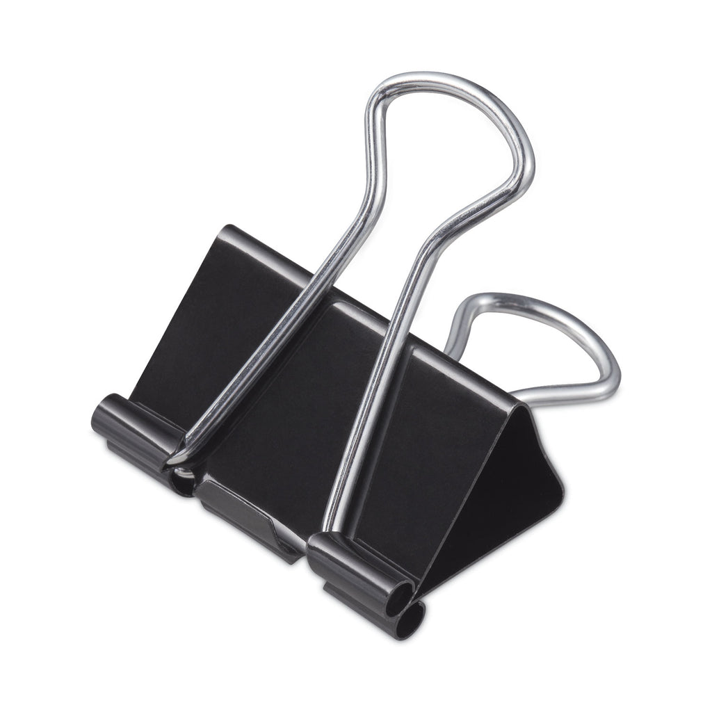 Ultra-efficient binder clips feature handles that can be hung, folded flat against clipped material, or removed for permanent binding. Efficient triangular design provides optimum strength and compression.