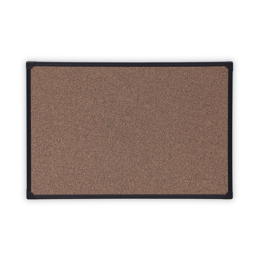 Tech cork board is the perfect addition and organizer for any personal work space or office. Built with a sleek, heavy duty, plastic, black frame with smooth, rounded corners. The functional board is a modern combination of rubber and cork material, providing it with extra durability and a unique color. Easily mount the frame board vertically or horizontally with included hardware.