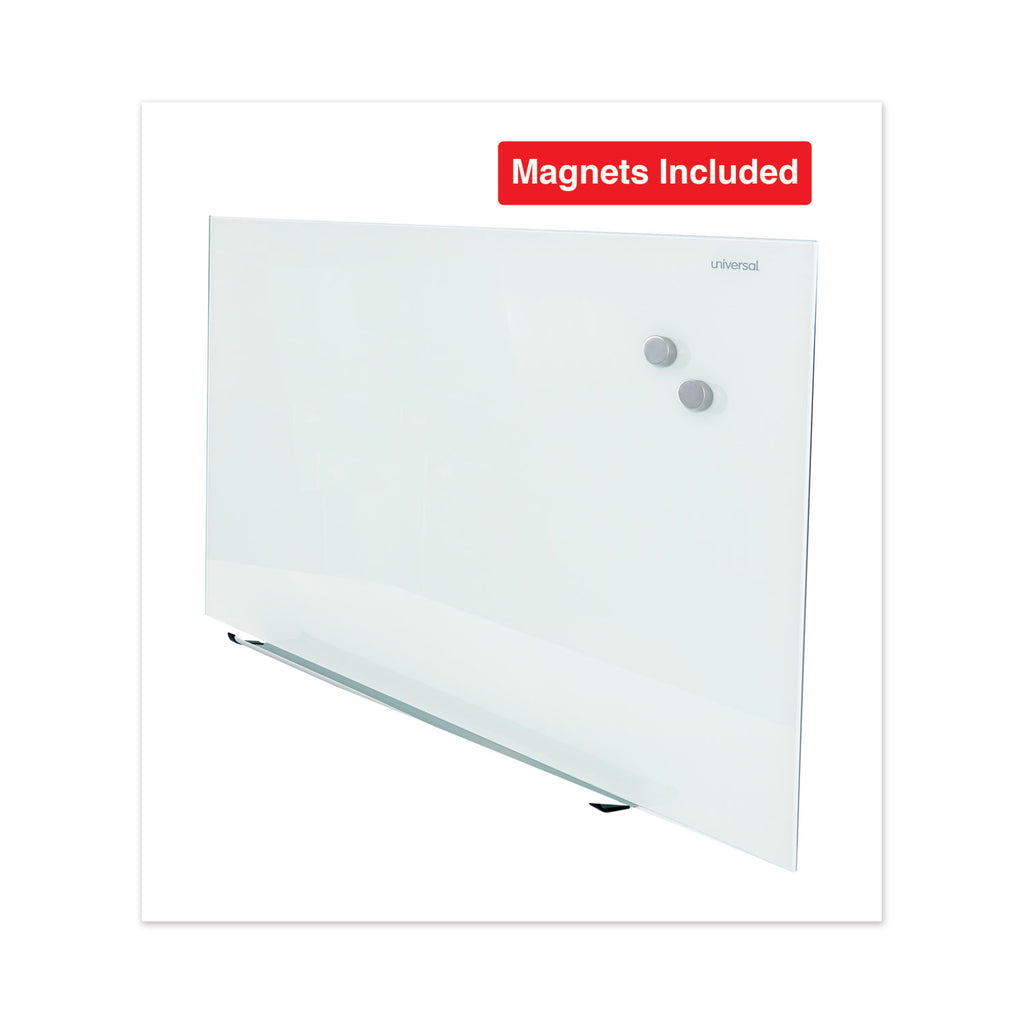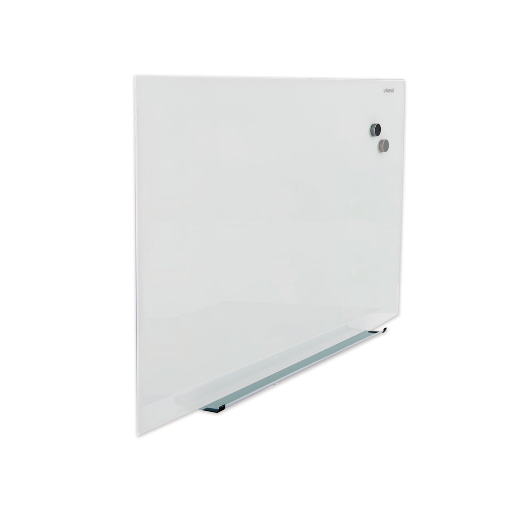 A premium solution for the contemporary office or conference room, this frameless board features a minimalistic, infinity-edge design that makes it appear as though the board is floating along your wall—an effect that's both retro-futuristic and thoroughly modern. Its frosted, tempered-glass face lends a gem-like quality to dry-erase ink that really makes colors pop, while delivering the stain-, ghost-, scratch- and dent-proof performance you'd expect. A ferrous core enables the use of surface magnets, which may help you add a bit of variety to your presentations. Board mounts horizontally.
