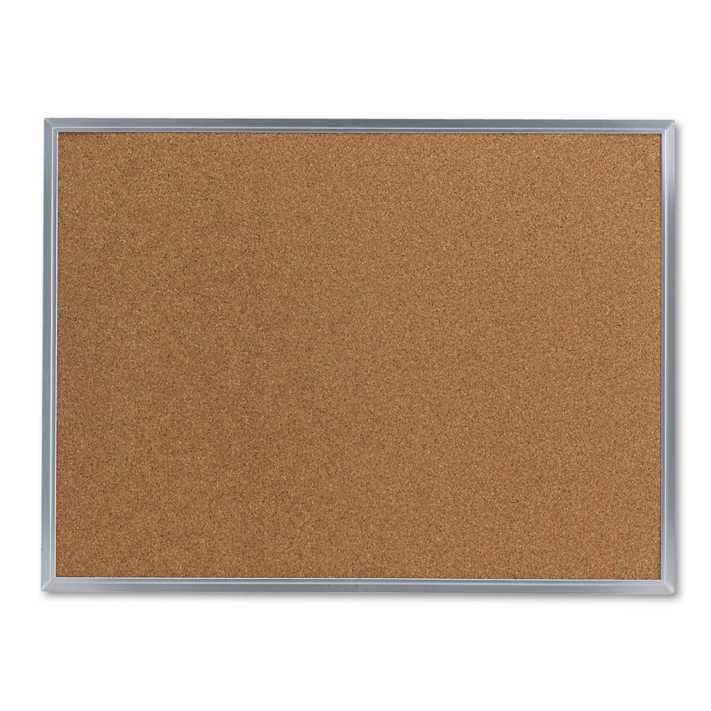 Get organized and keep important notes in-view with a resilient, all-natural cork board. The self-healing board accepts pushpins. Constructed with a durable, wrap-around, aluminum frame with a soft, satin finish that blends into any decor. The dense fiberboard backing provides added durability for lasting use. Includes a wall mounting kit for easy installation. The versatile bulletin board can be mounted horizontally or vertically.
