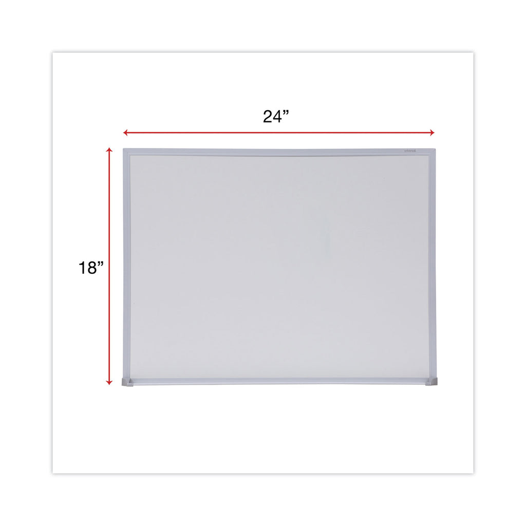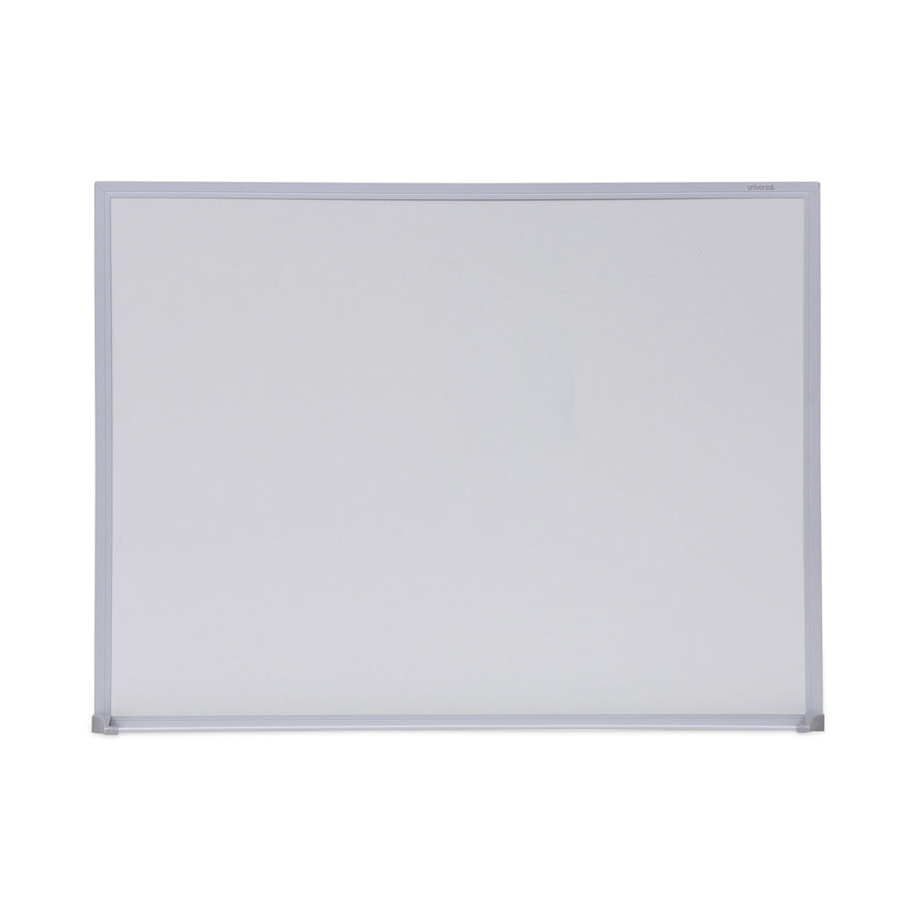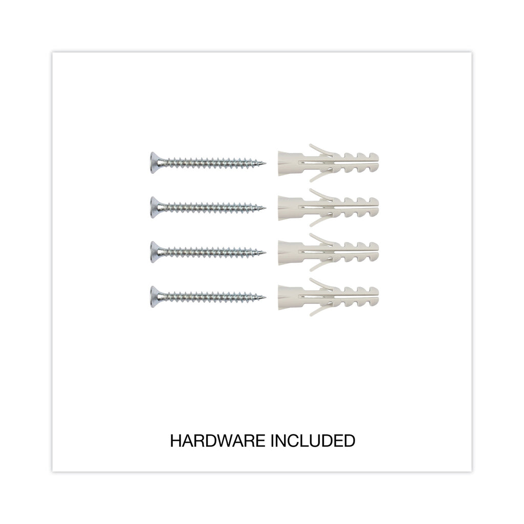 Aluminum framed, sleek and modern melamine board that’s built with added strength and durability. The writing space is encompassed with a simple, classic, slim-line frame design that fits in with any office or workspace. The smooth, melamine surface is great for meetings and presentations. Full length integrated maker tray. Mounts horizontally with included hardware. Dry erase markers and eraser are sold separately.