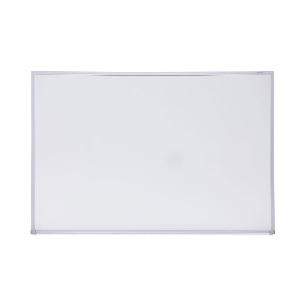 Aluminum framed, sleek and modern melamine board that’s built with added strength and durability. The writing space is encompassed with a simple, classic, slim-line frame design that fits in with any office or workspace. The smooth, melamine surface is great for meetings and presentations. Full length integrated maker tray. Mounts horizontally with included hardware. Dry erase markers and eraser are sold separately.