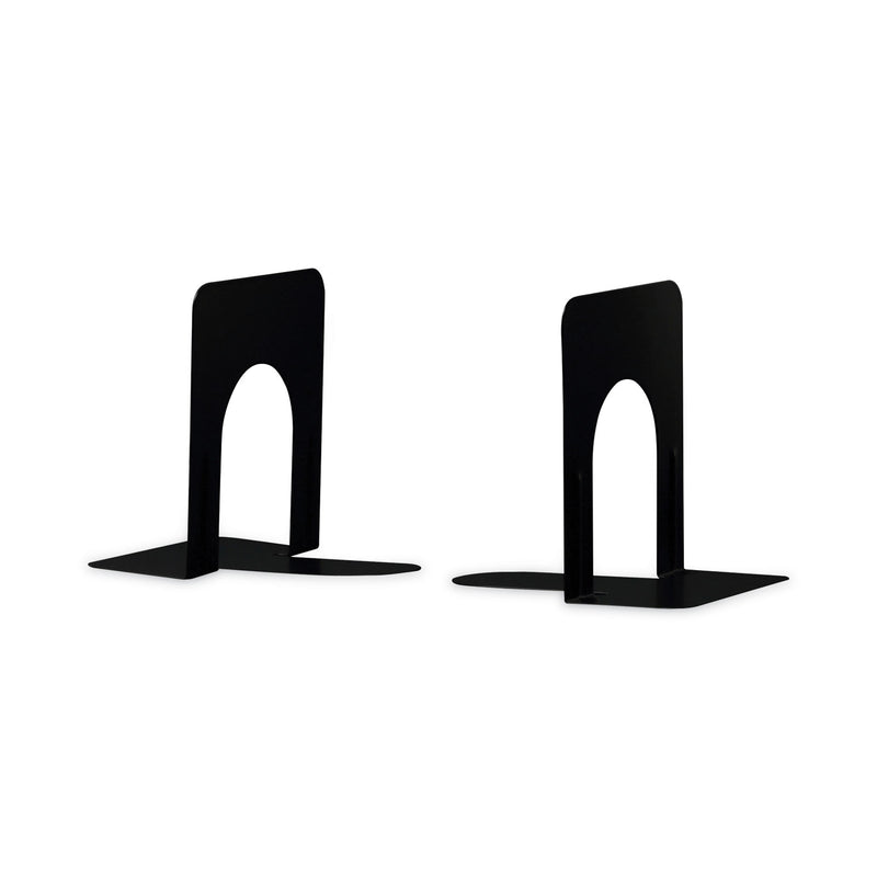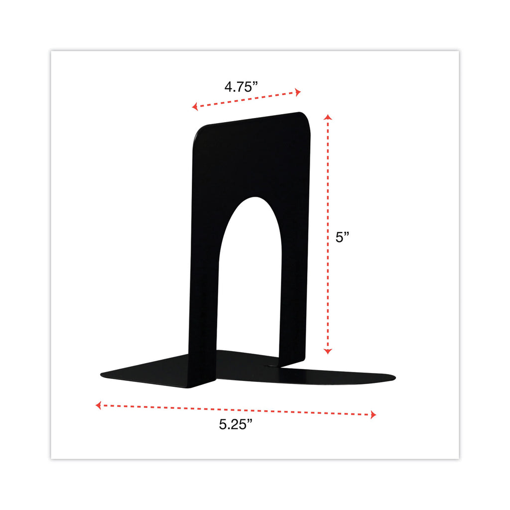 Reinforced, sturdy, metal bookends are designed to hold large and heavy books, files, and binders. The bookends help organize your workspace by removing clutter and keeping files in sight. The smooth edges with ribbing add stability and rigidity to hold almost anything upright. Two heavy gauge steel bookends with a hard enamel finish keep items in place and within reach.