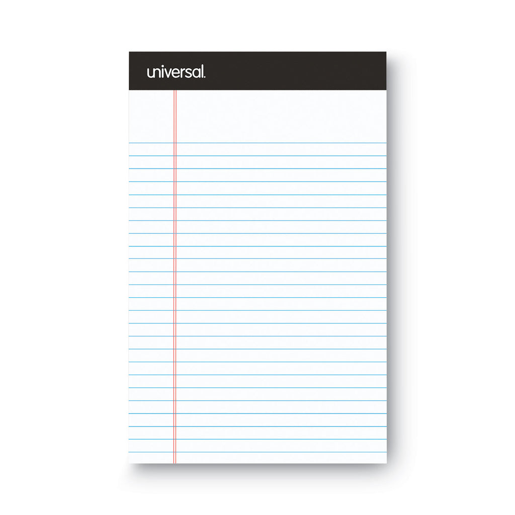 Heavyweight bright white paper with red margin rule is perforated for easy removal. Tasteful black head strip provides a professional appearance. Sturdy heavy-duty back offers support while writing away from a desk.