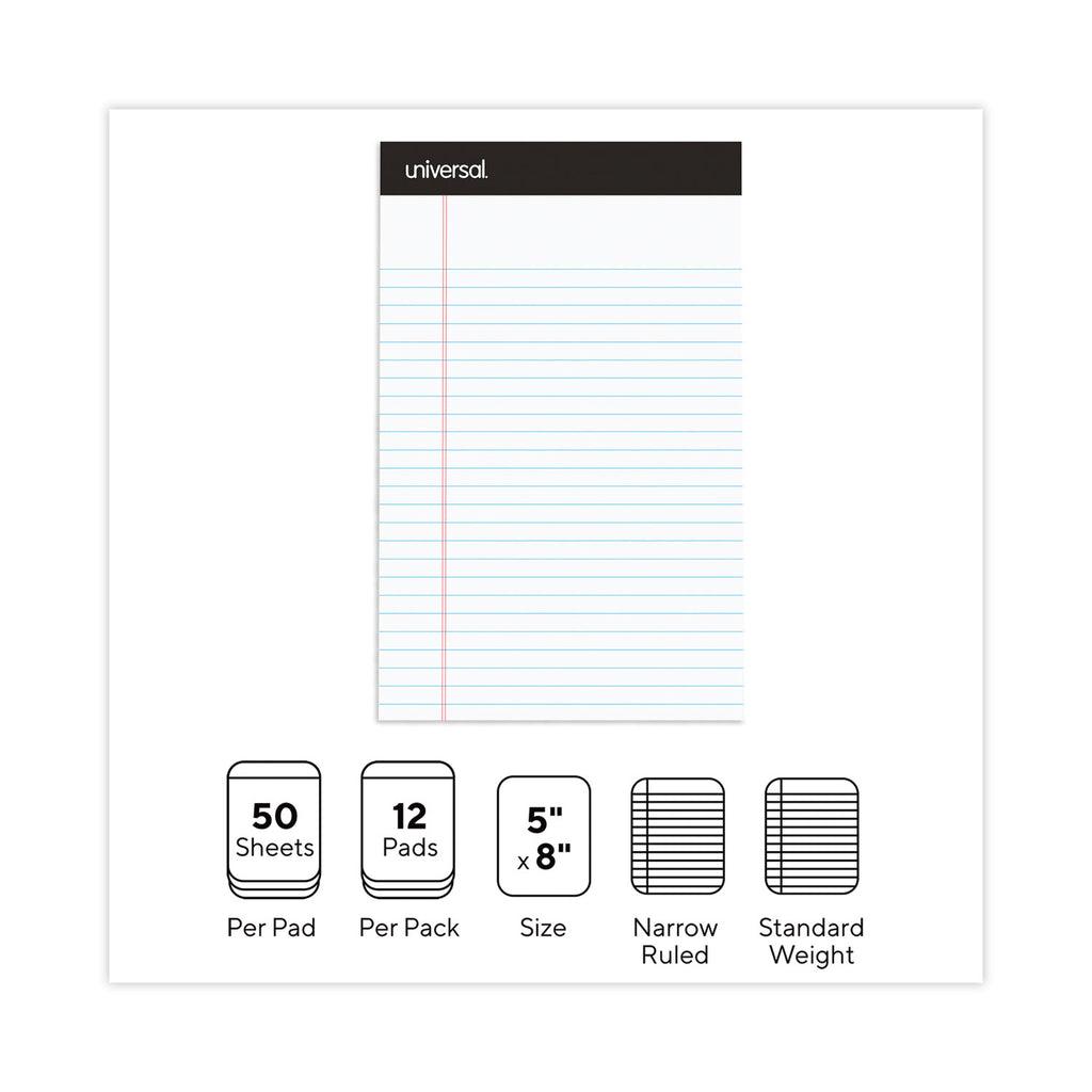 Heavyweight bright white paper with red margin rule is perforated for easy removal. Tasteful black head strip provides a professional appearance. Sturdy heavy-duty back offers support while writing away from a desk.