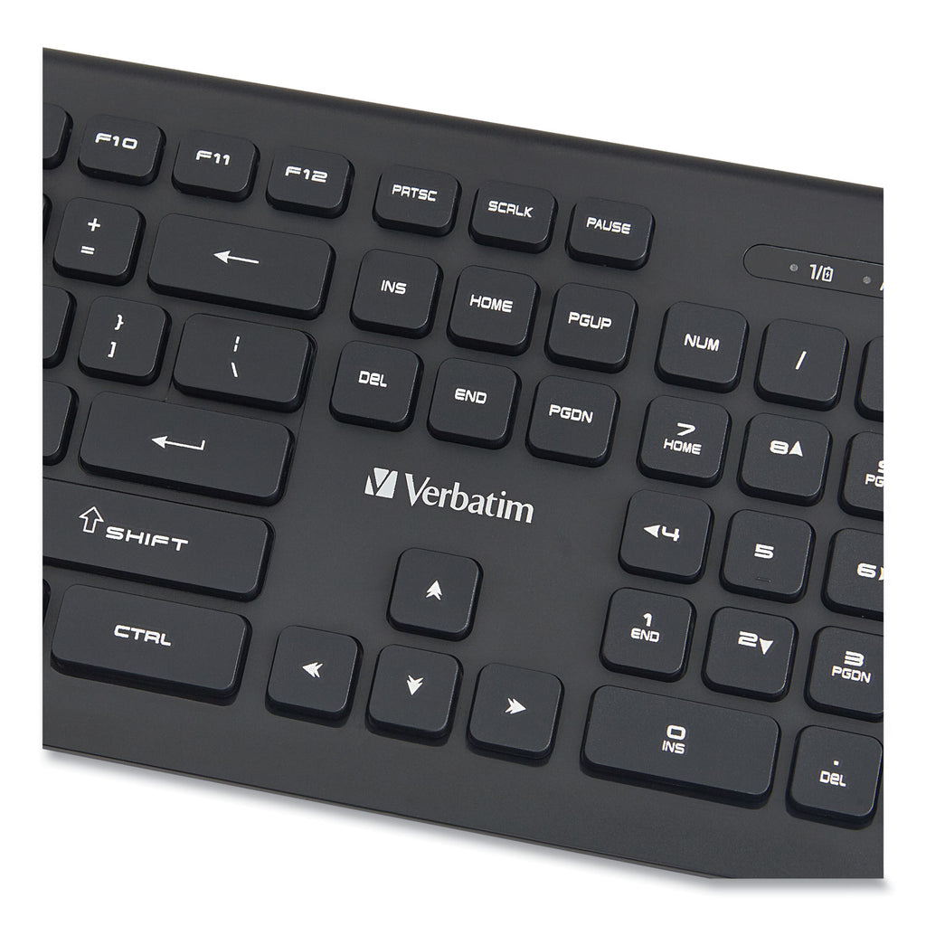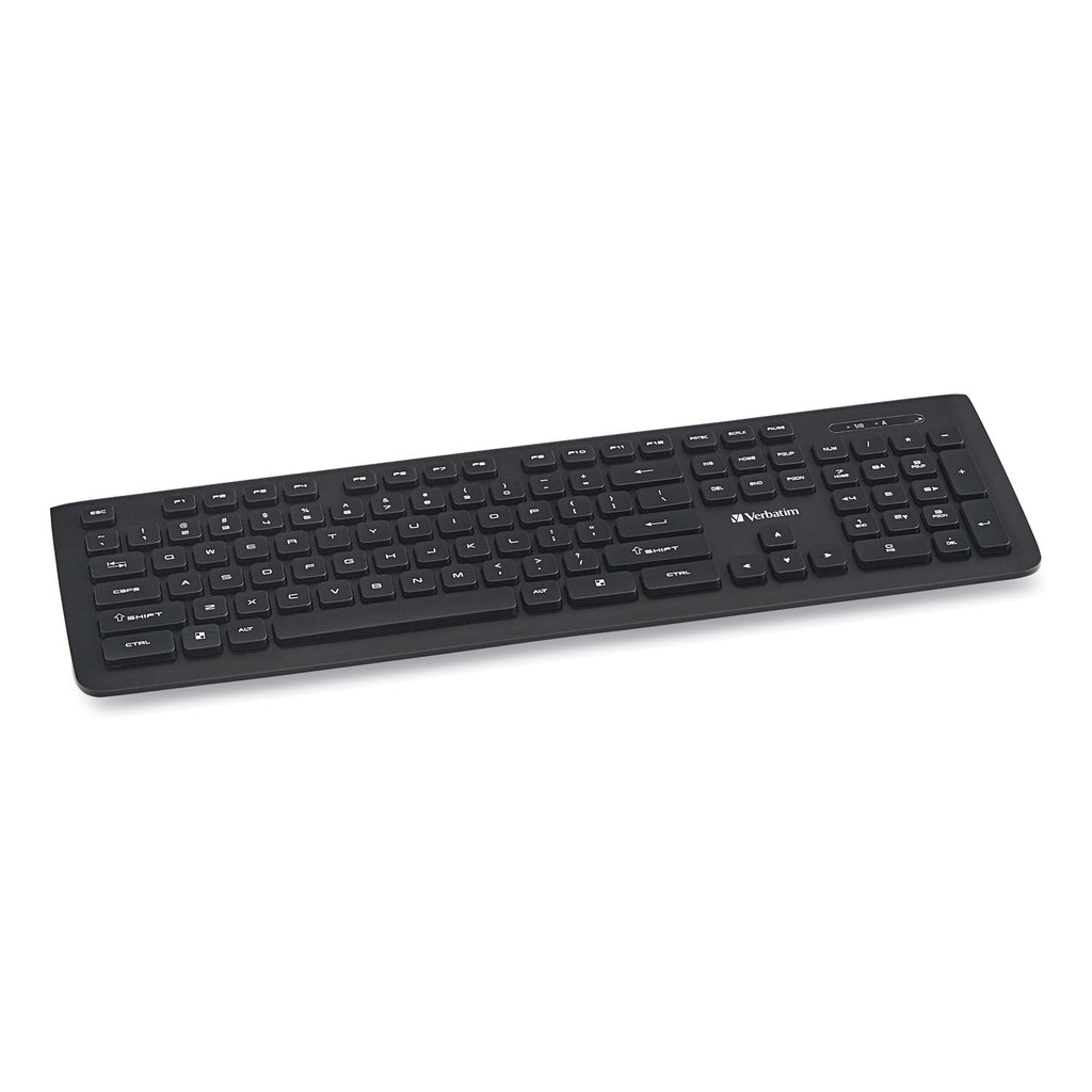 With a slim design and reliable wireless performance, the Verbatim Wireless Slim Keyboard is the ideal companion for your PC. This keyboard offers 2.4 GHz wireless communication, so there are no delays in what you type and what you see on-screen. The included nano receiver is small enough to plug in once and stay connected. Quiet, soft-touch keys provide a crisp, responsive feel when typing. Featuring a slim design, this keyboard fits perfectly into any space.