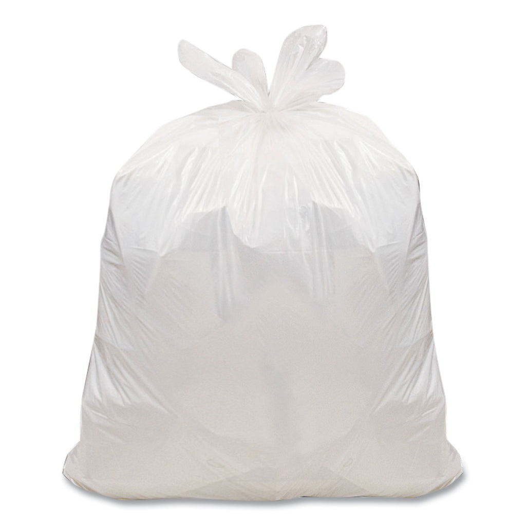 Low density liner provides excellent tear strength, stretch and puncture resistance. Convenient quantity for users with lower requirements. The ideal bag for home office use. Strong enough to hold all residential household garbage. Flap-tie closure.