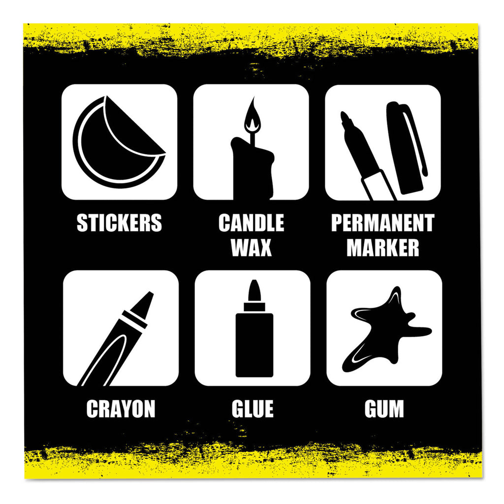 - Safely removes adhesives, gum, tar, crayon, scuff marks, wax, sap and more.