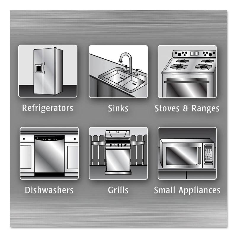 - Convenient way to quickly and easily clean, shine and protect stainless steel appliances.