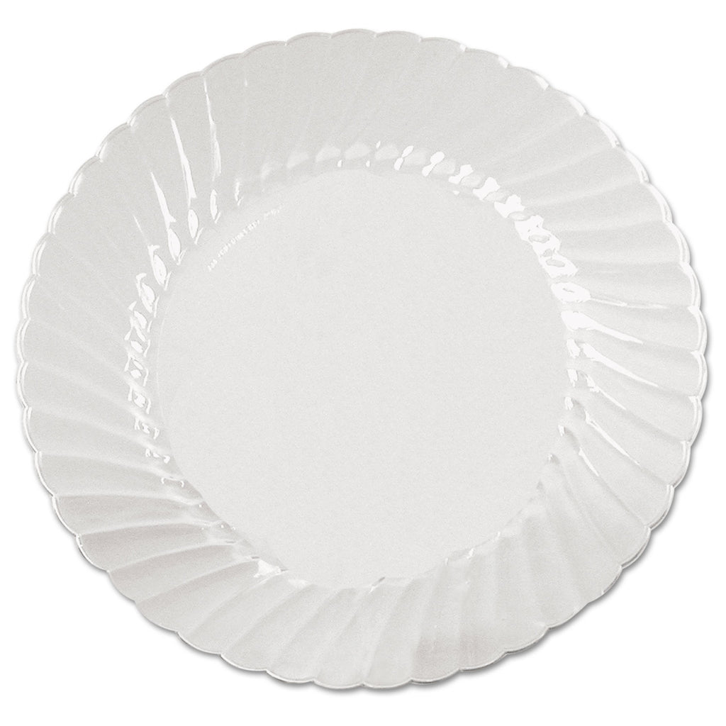 Stylish plastic dinnerware is made to be sturdy. Presents the elegance of china in a more durable plastic form. Provides the convenience of easy cleanup and disposability. Adds a touch of grace to any occasion.