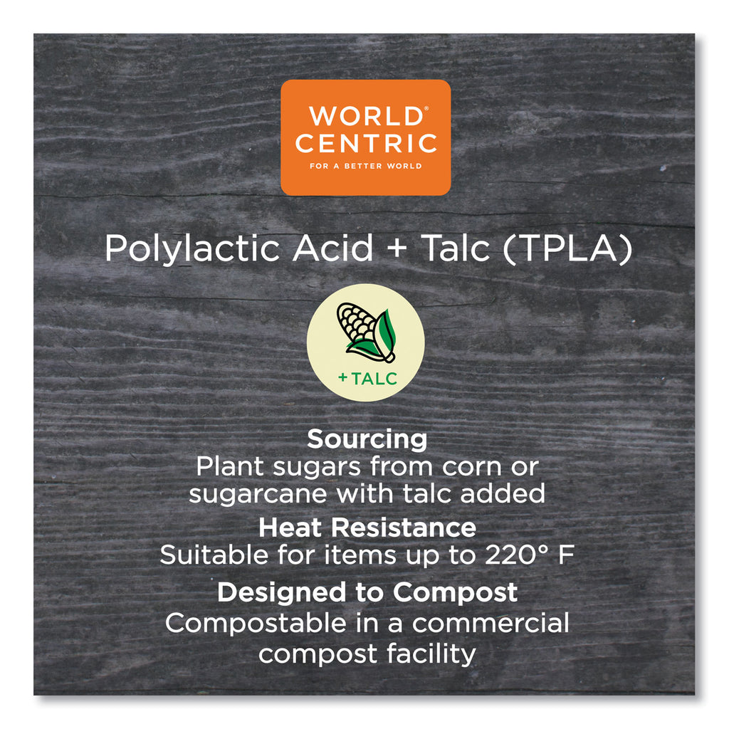 - Made from plant based TPLA compostable plastic (70% non-GMO corn and 30% talc).