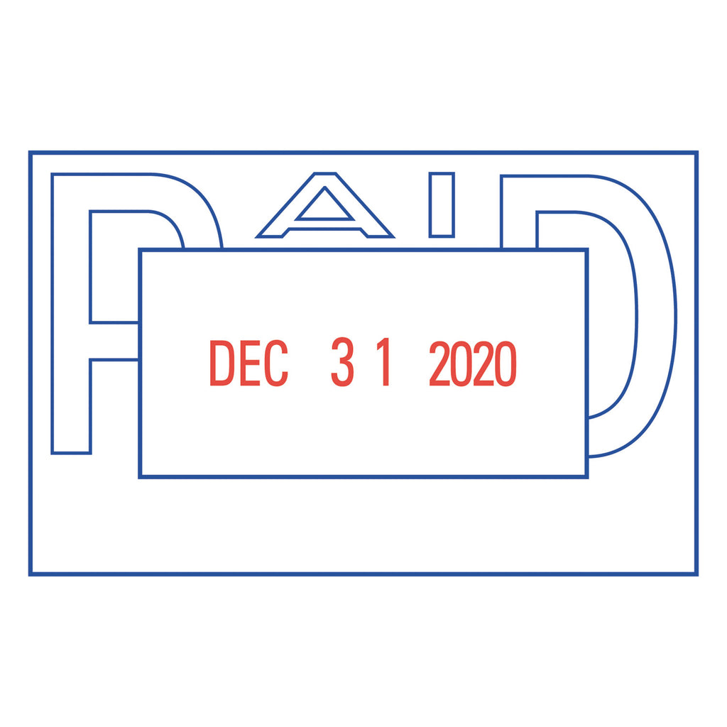 Versatile stamp easily converts from a line dater to message dater. Recycled plastic mount has an impression window for easy identification. Rubber feet help keep the stamp stable and decrease slippage. Alignment marks aid in stamping. Message prints in blue, date in red for added emphasis. Pre-inked, eight year dater is easy to use and delivers years of service.