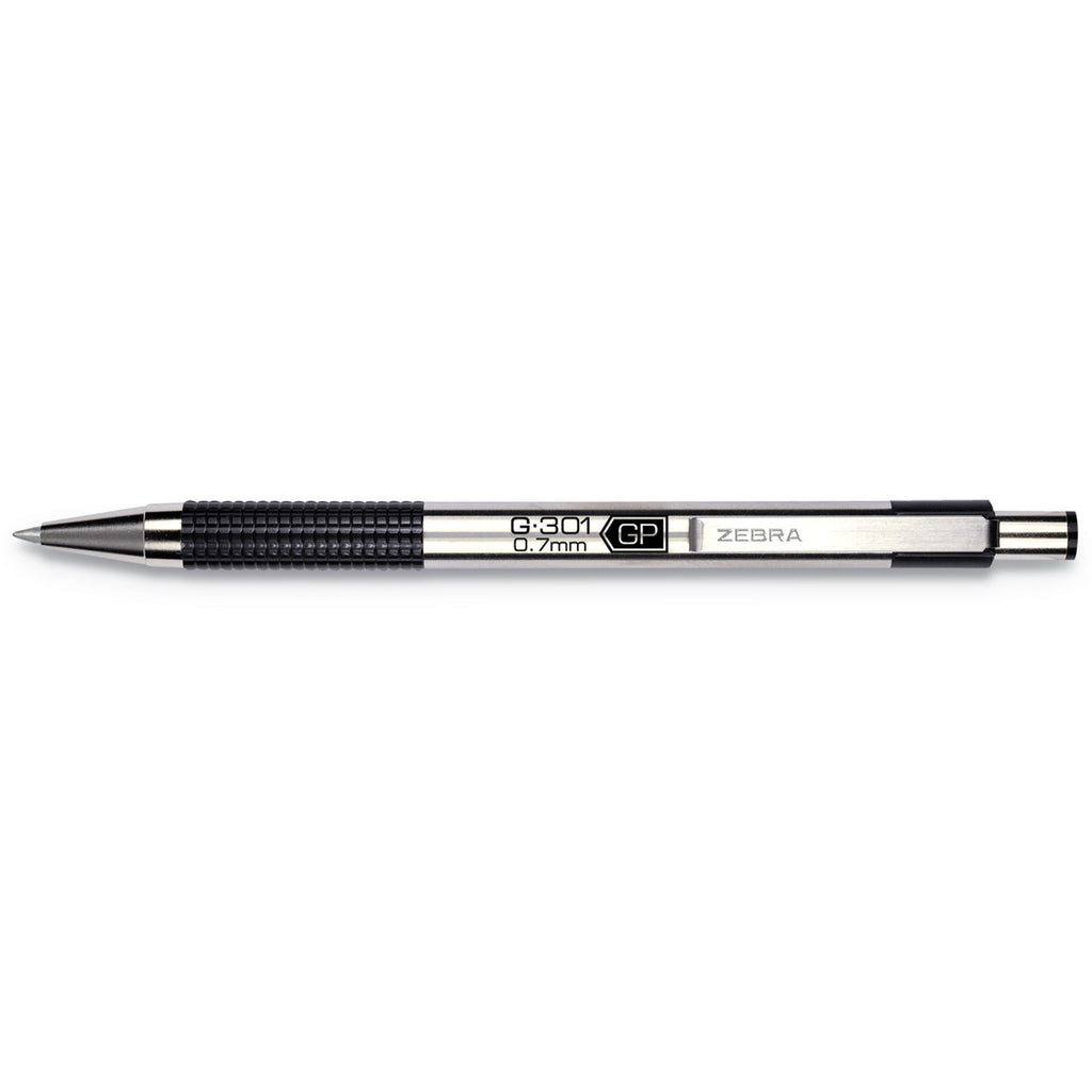 Zebra Pen G-301 Retractable Gel Ink Pen is rugged, sleek, and easy to sanitize. This hard-working metal pen brings industry-leading precision and stability to your writing. The refillable G-301 has a sleek stainless steel barrel, metal plunge, clip and cone for an executive look. Corrosion resistant, stainless steel barrel is easier to sanitize than plastic. With its vibrant ink, the 0.7 mm medium point is perfect for everyday writing, document signatures and creative expression. Metal clip readily attaches to a notebook, planner, work bag or briefcase pocket. Impress your pen pal, up your bullet journal game or fill out your daily diary with a trusted, continually reliable writing experience. Clean and stylish, this trusted pen is suitable for boardrooms, courtrooms, classrooms, medical settings, offices and job sites. Enjoy the precision of a gel ink pen in your home and office writing without any of the drawbacks.